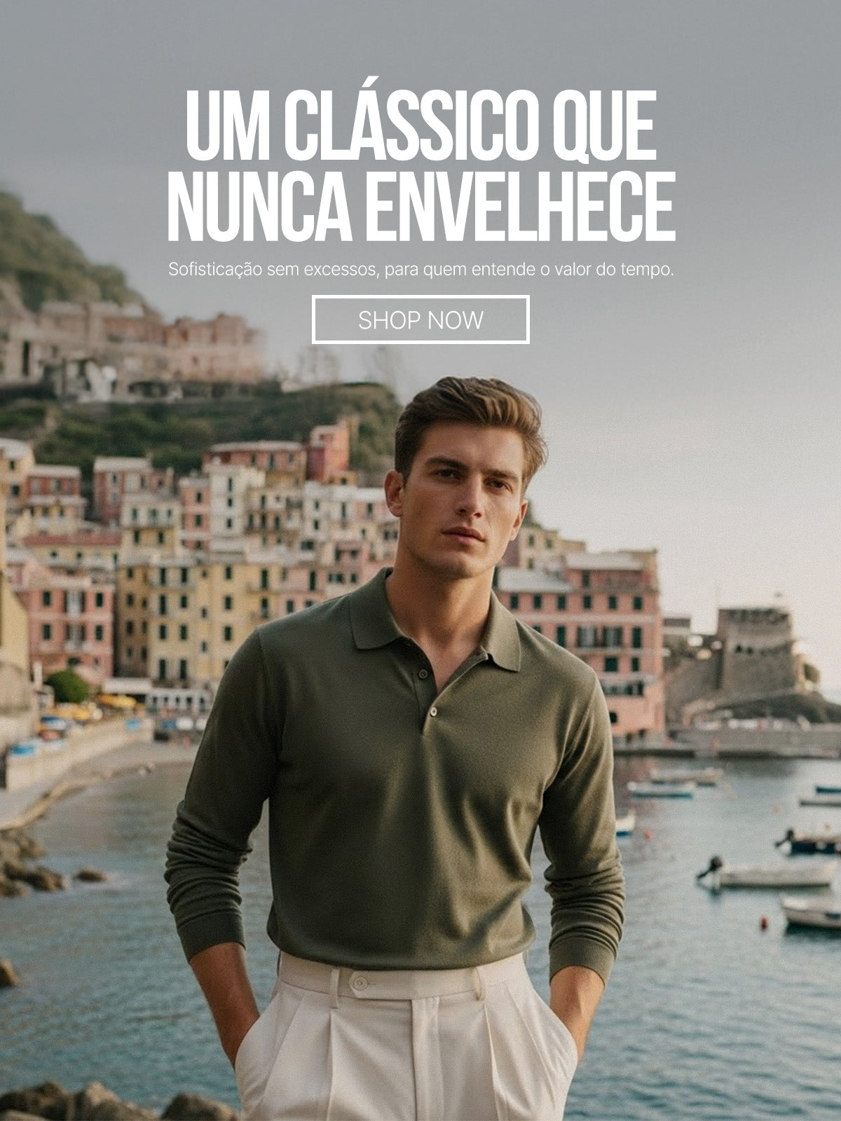 Trabalhamos com peças cuidadosamente selecionadas, priorizando qualidade, caimento impecável e versatilidade. Cada coleção é pensada para acompanhar o homem moderno em todas as ocasiões — do casual ao sofisticado, do dia a dia aos momentos especiais.